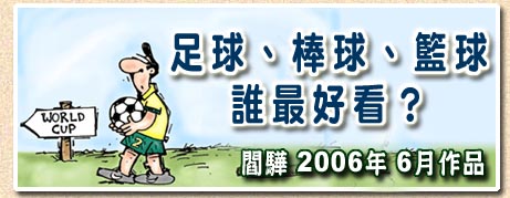 我們也可以參考一下美國人的說法:喜歡看田徑賽、或是覺得百米賽跑很有趣的人鐵定會喜歡看足球賽,相反地,覺得田徑賽很無聊、百米賽跑更是窮極無聊的人一定不喜歡看足球。儘管百米冠軍通常都是美國人奪冠,但是大多數的美國人始終不喜歡看百米賽跑,所以美國自然也不會喜歡足球。光就這一點,台灣人與美國人的個性可說是非常類似,這也難怪台灣人也不怎麼喜歡看足球賽。 |