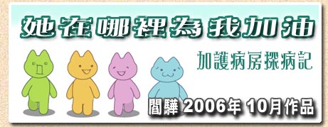 我是會判讀唇語的怪人,於是我就仔細看著侶馨的嘴唇來觀察她想表達的事情。沒想到我從侶馨的微弱唇語中所判讀到的幾句話居然是:「你現在好嗎?你最近在做什麼工作?」天啊!躺在加護病房裡頭的人是妳耶,怎麼妳賣力吐出來的話語居然不是圍繞在自己,而是在問別人的近況呢? |